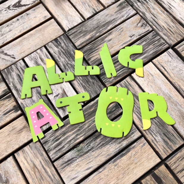 像是把ALLIGATOR這九個字母,直接拼接成一隻立體的小鱷魚,或像是DUCK這四個字母,D和C是身體,K是嘴巴,可以組合成一隻可愛的小鴨子。字母都是大寫,沒有小寫。