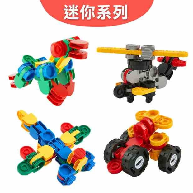 - 預算考量:選擇「迷你系列」,包含基本的顆粒,也有四個輪子,想組車車也沒問題。