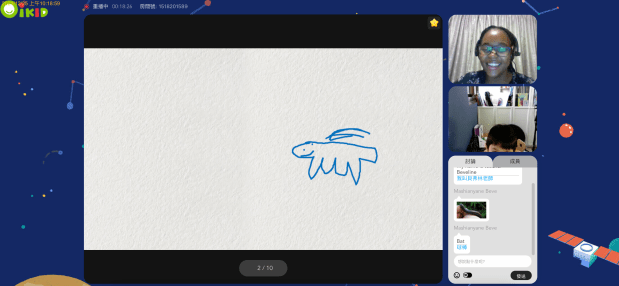 第一次體驗的老師應該是南非人,孩子英文雖然不錯,但是對口音比較不熟悉,加上聲音又是從電腦發出,一定不如現場聽得清楚,一開始有些不知所措。但是老師非常有耐心,也很親切,慢慢地也很清楚地用簡單的句子引導小朋友,感覺起來是很有經驗的老師。過程中也常常會給孩子星星做獎勵。