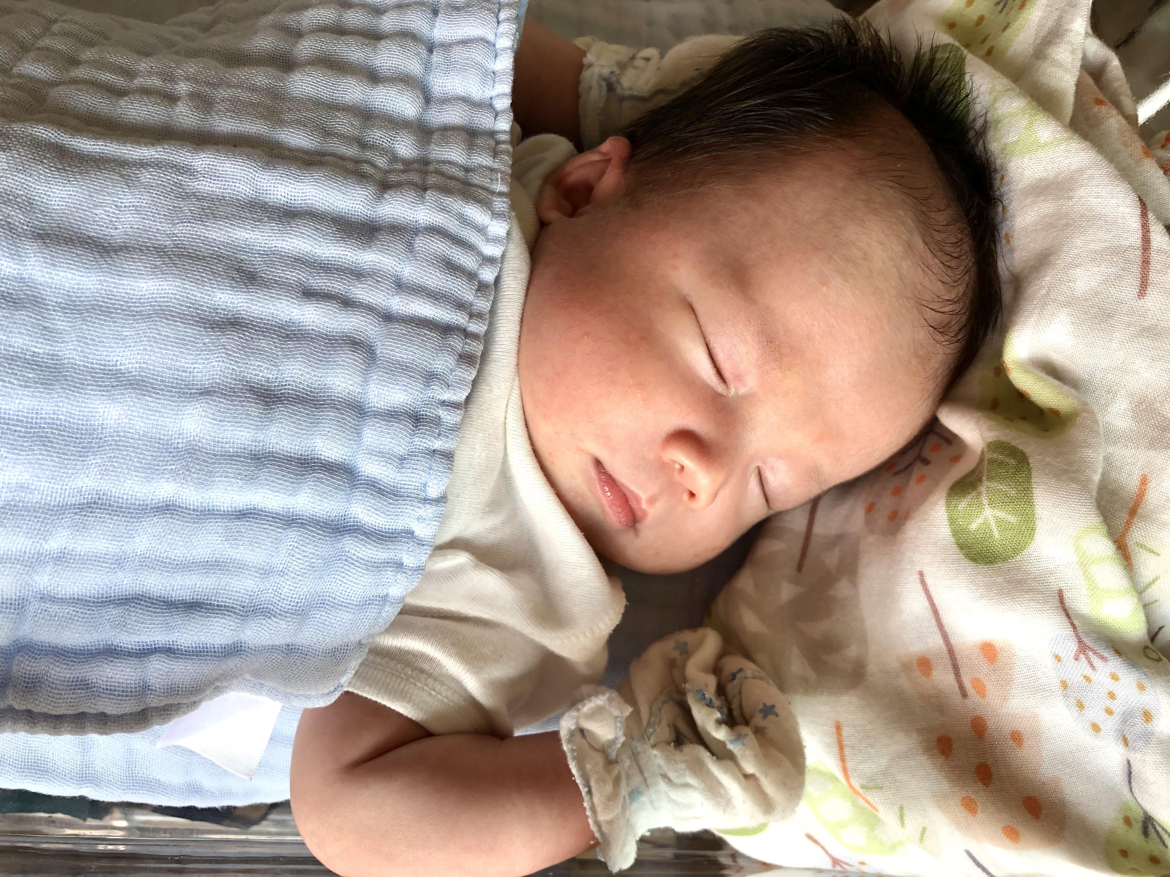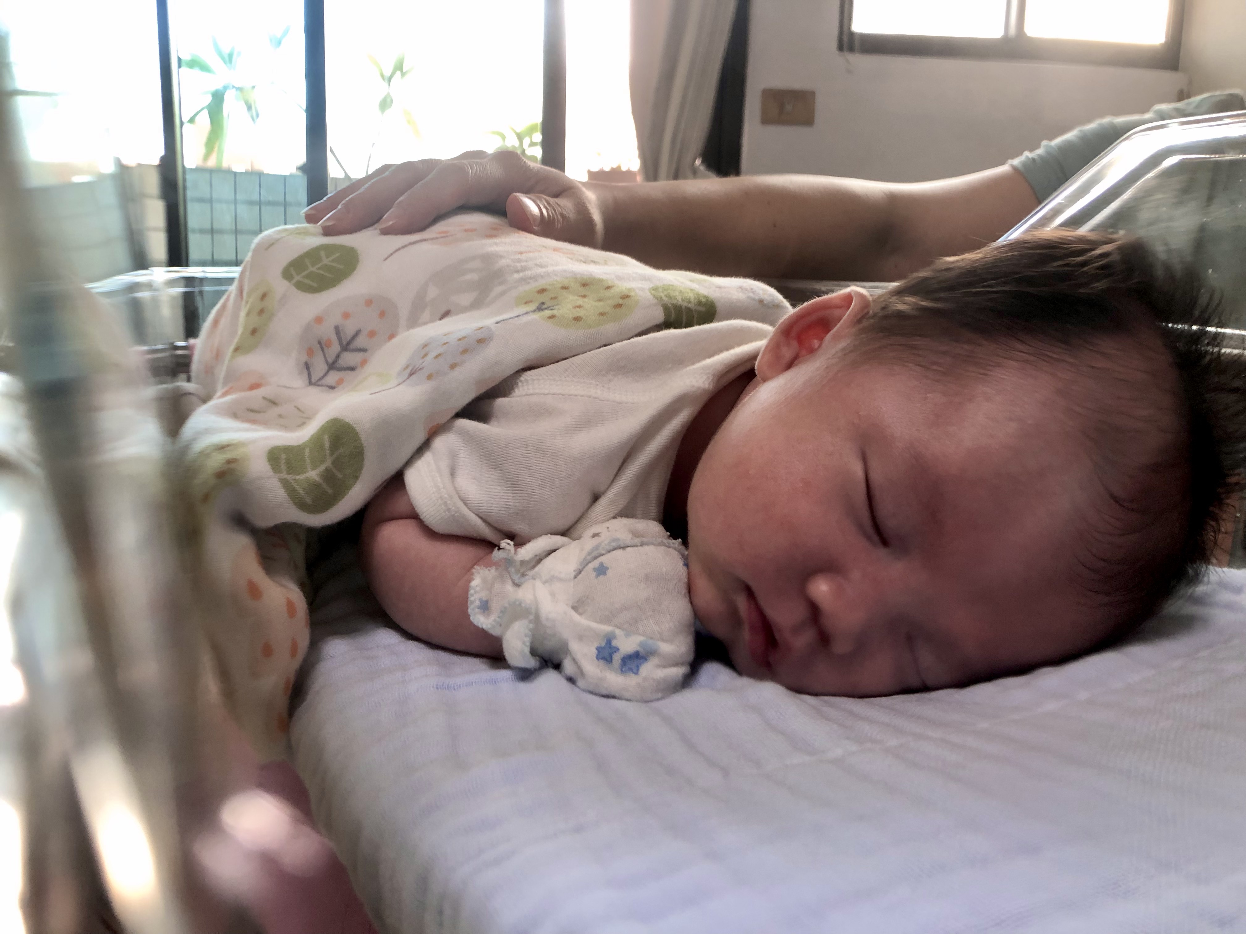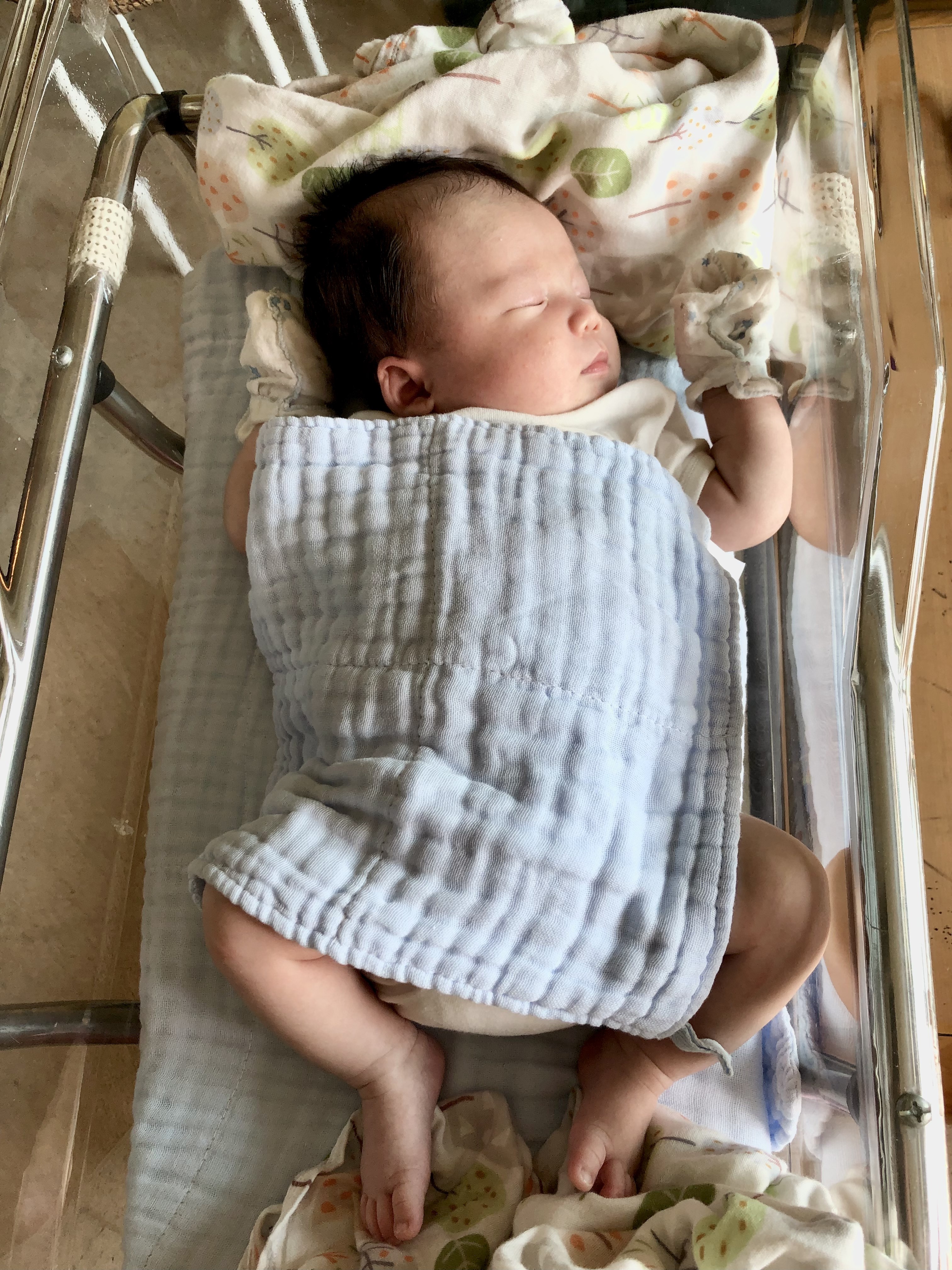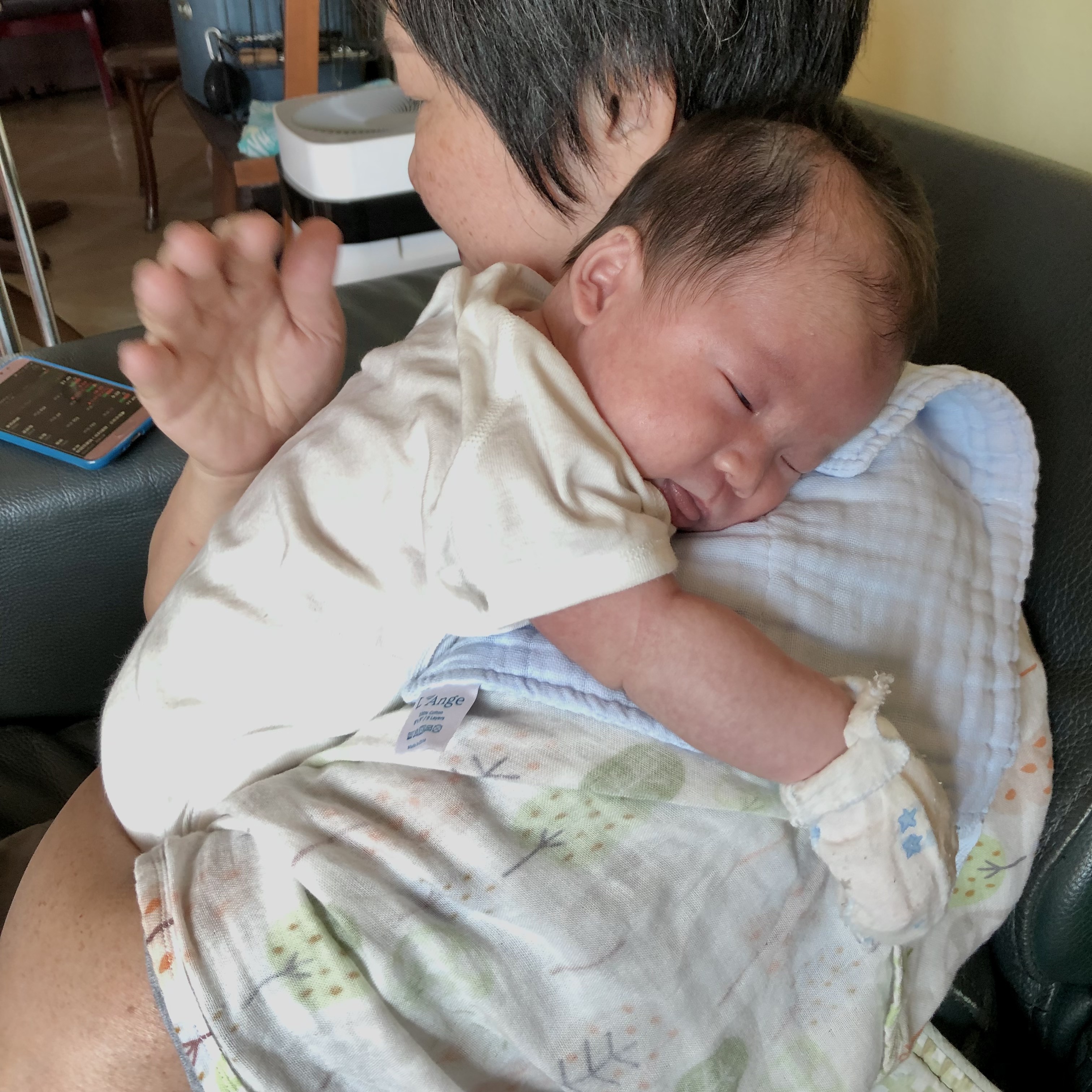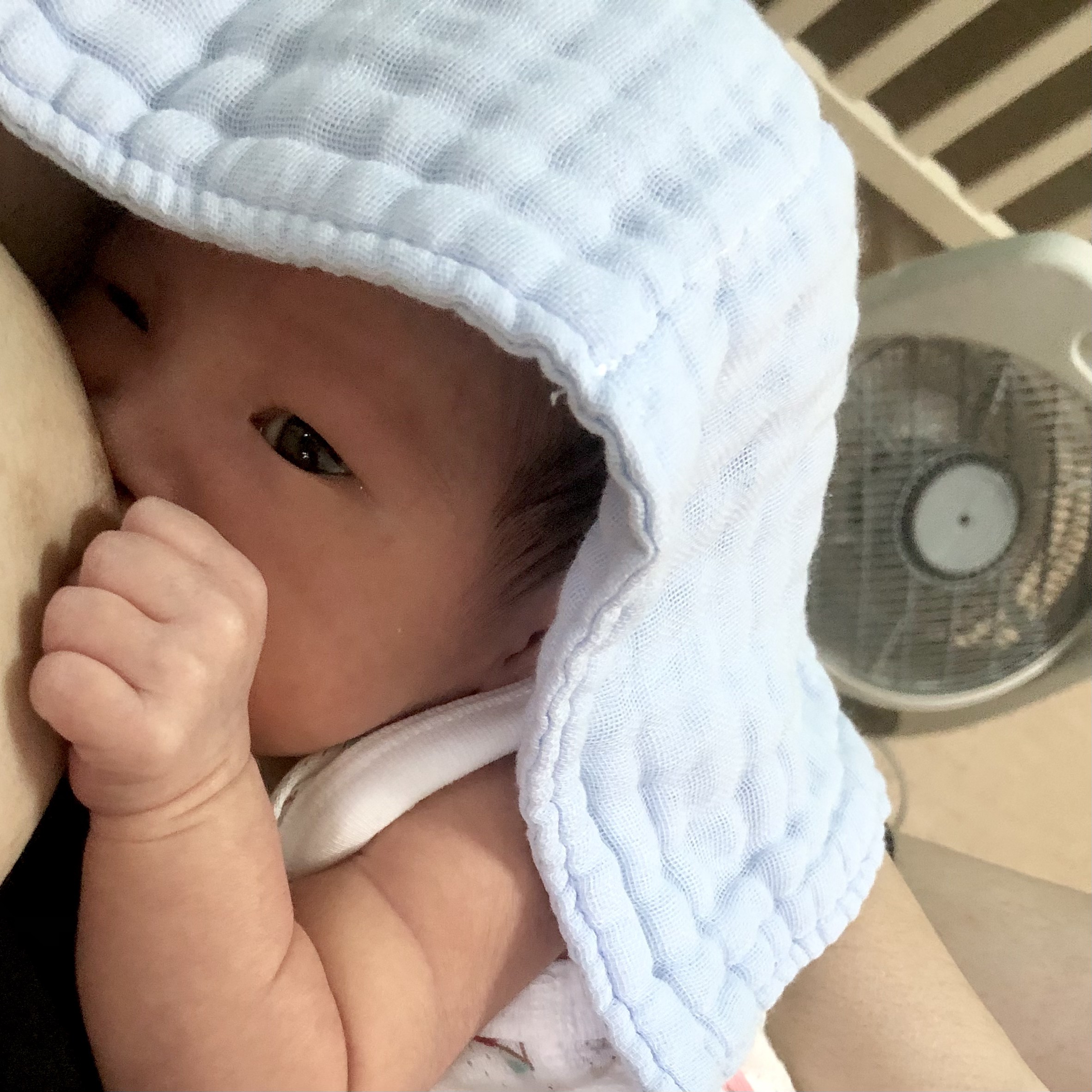 剛出生的寶寶真的好小一隻,一條正方形的小方巾就可以拿來蓋肚肚、擋風,壓塊布在身上也可以讓寶寶有一點安全感。