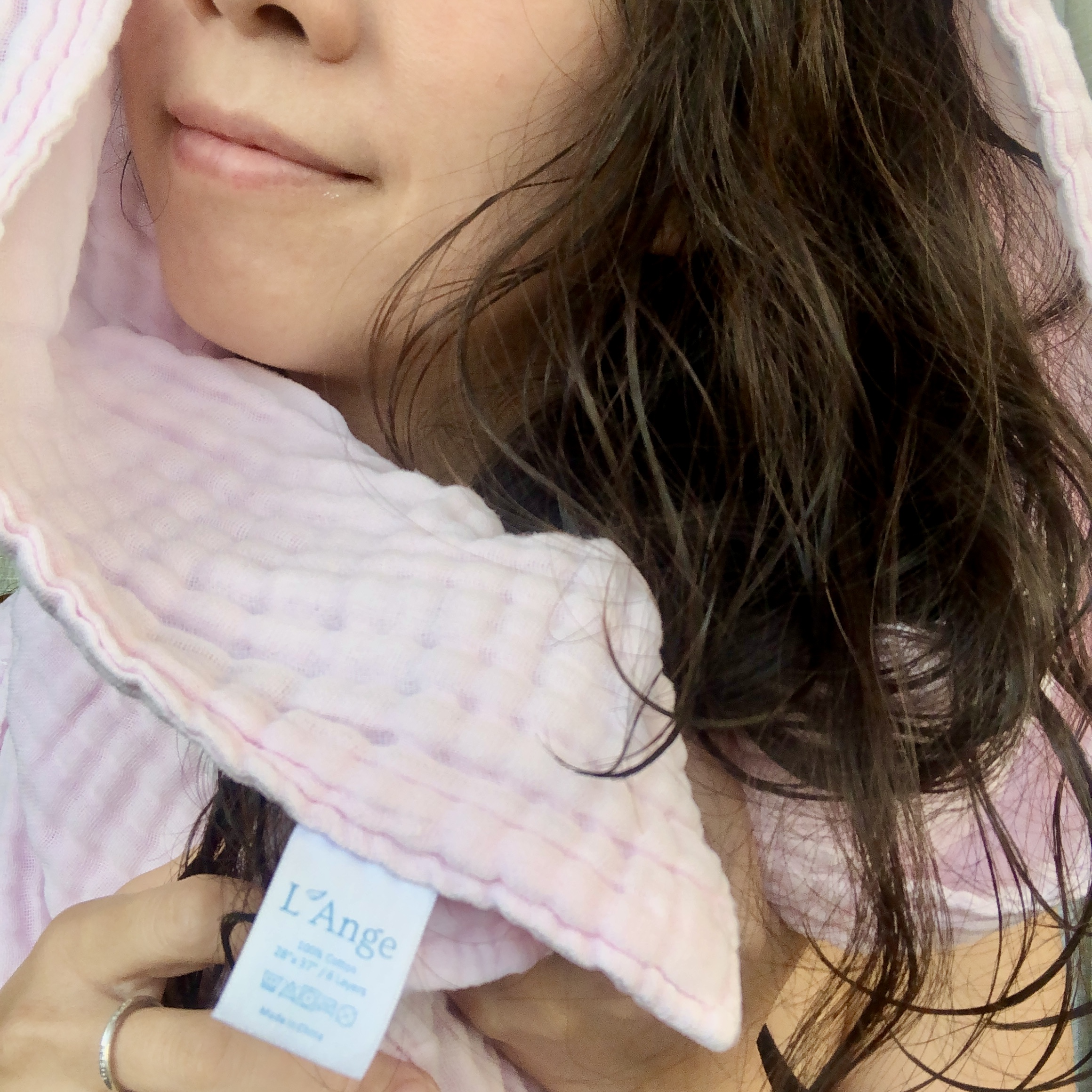 好幾年前,我就已經跟著其他部落客的分享及推薦,購買「L’Ange棉之境」的紗布浴巾、小方巾。從孩子還是小嬰兒的時候就開始使用,喝奶擦嘴巴、蓋在肚肚上當小被子、當成床包、當浴巾,都非常棒!無論是在家裡、去露營、甚至是出國旅遊去關島的海邊曬太陽,我們都把L’Ange棉之境帶著。甚至後來大人也把容易原本家中發霉的浴巾通通換掉,全家都換成棉之境紗布浴巾!