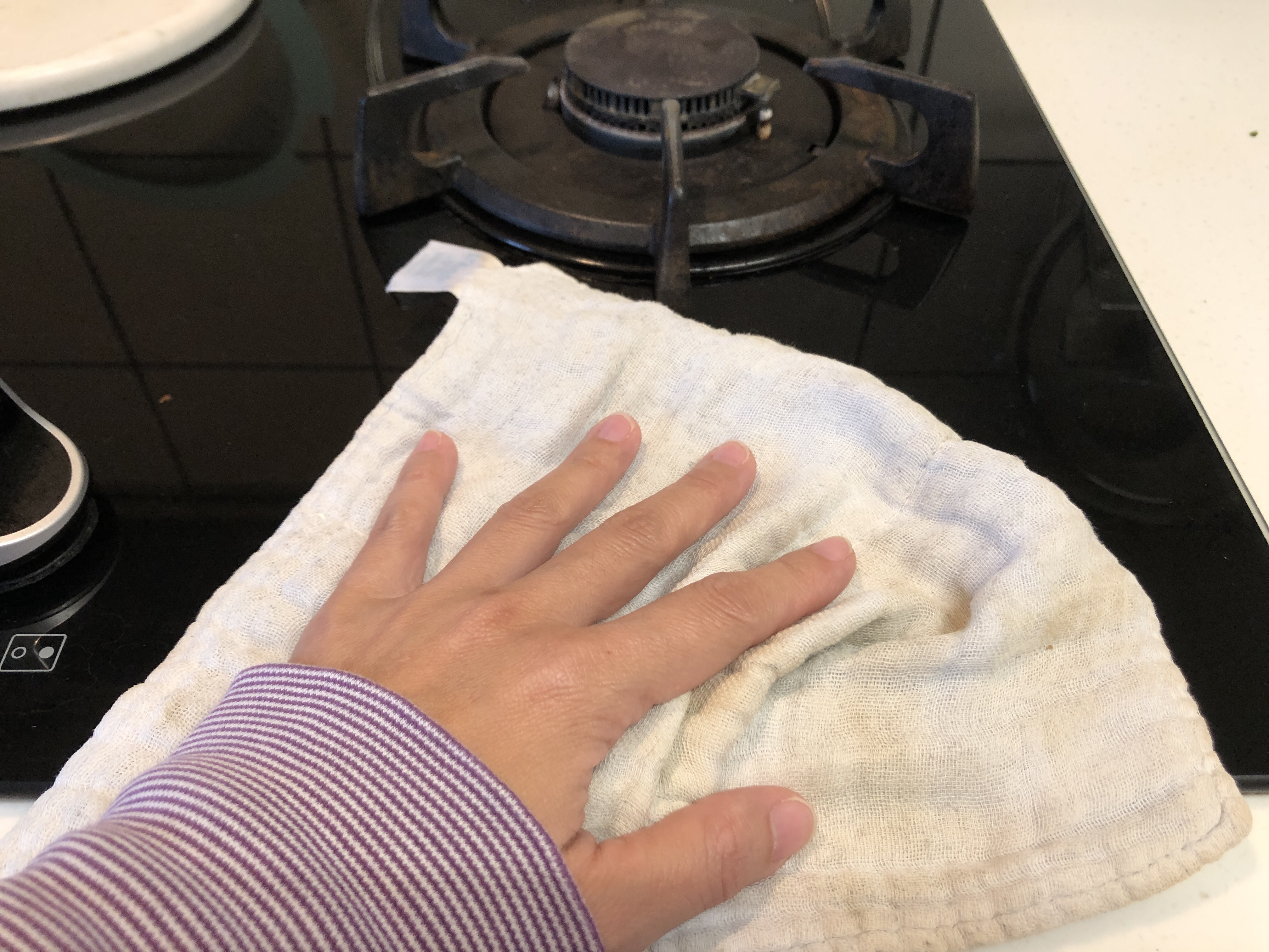 孩子毛巾拿來吃飯擦嘴比較容易髒,像是我們家很喜歡吃義大利麵,所以久了毛巾髒污難免比較多,我就會拿來二次利用當抹布延續他的生命,很好擰乾、又沒有棉絮,而且擦拭流理臺意外地很去油耶!大家可以試試看。