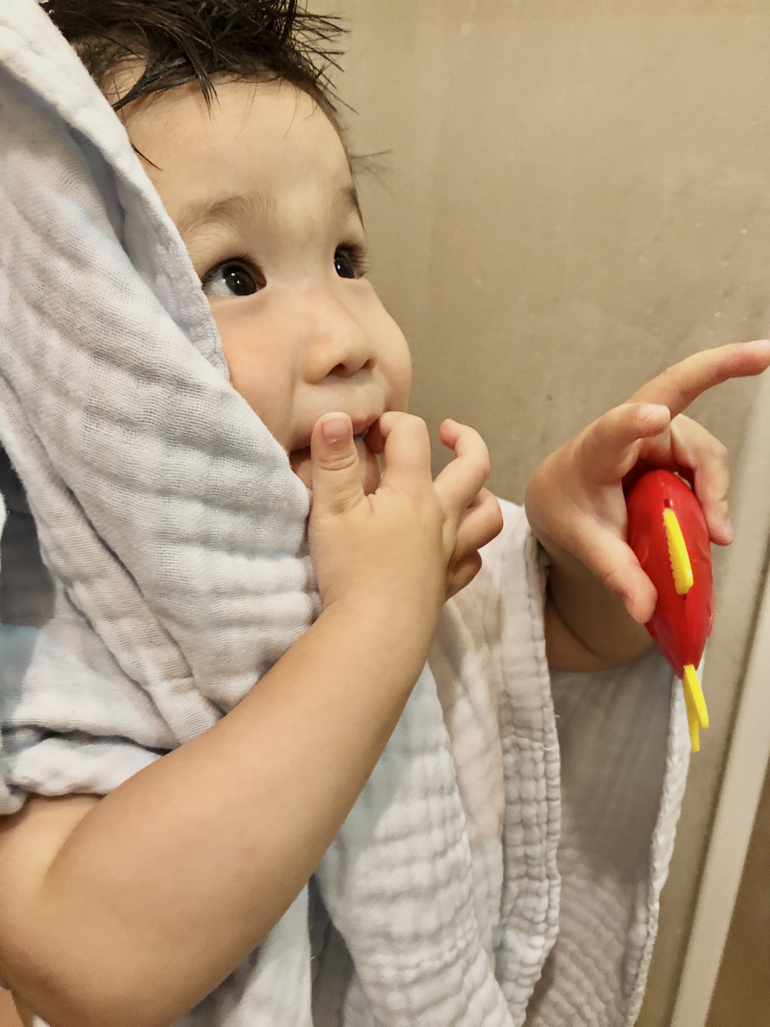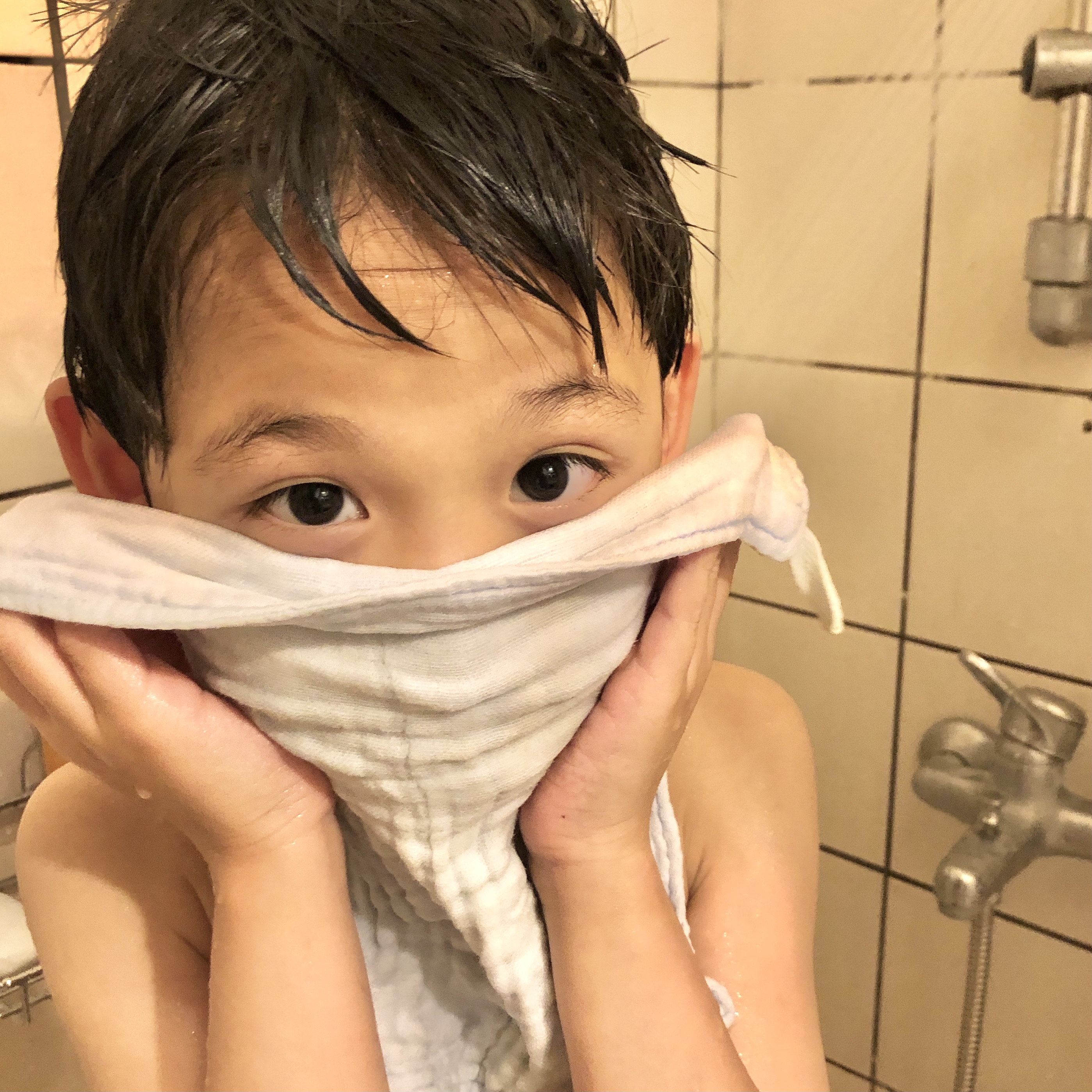 其實我自己本身從小也是異膚體質,眼睛也比較敏感,只要是碰到髒很容易眼睛發癢,所以只要毛巾或浴巾棉絮比較多,擦臉的時候不小心揉進眼睛,我就會眼白整個腫起來,一直分泌眼淚,隔天睡醒都還是眼睛會不舒服。所以我不只給孩子們用棉之境L’Ange擦臉、擦嘴巴,我自己也很愛用棉之境的方巾擦臉。