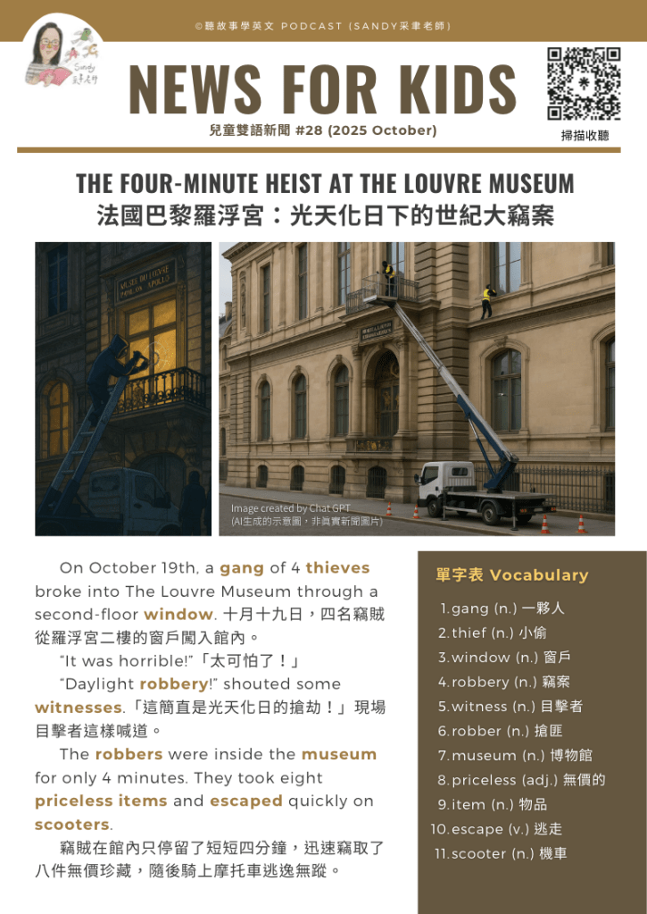 今年2025/10/19,法國羅浮宮發生震驚全球的竊案,四個蒙面賊利用升降機和玻璃切割機,闖了進去,偷走八件法國王室的稀世珍寶。